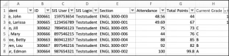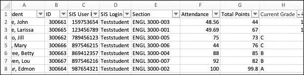 All sections of a course can be uploaded at once or separately. The column heading will need to match this format: