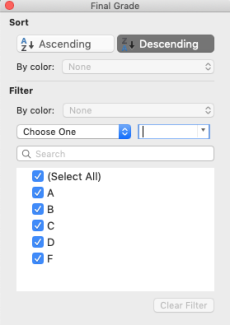 - Locate the column for Attendance and click the drop-down menu arrow in the column header cell.