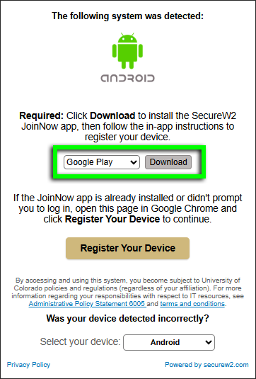 You should be directed to the SecureW2 JoinNow page in the Google Play Store. Click Install.