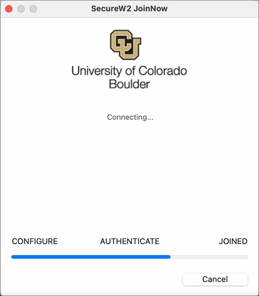 If you're in an active Wi-Fi early-access building, the onboarding client will indicate that it's authenticating to CU Secure.