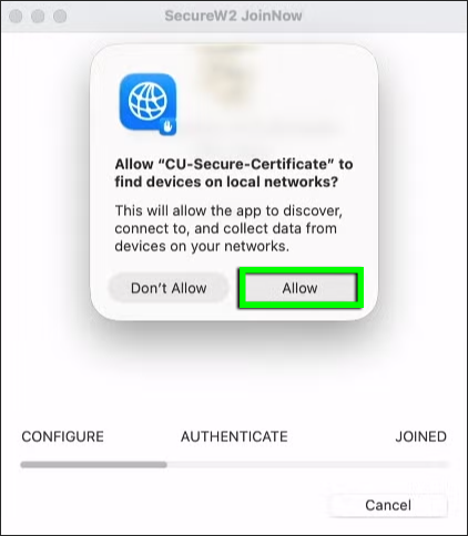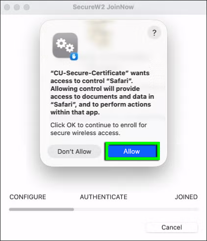 - Click Always Allow. (Learn why this is safe to do: CU Secure Wi-Fi FAQs.)