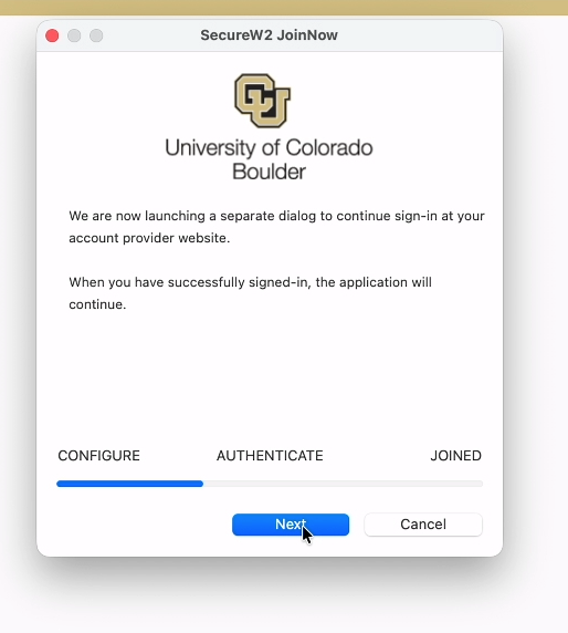 If asked to allow SecureW2 JoinNow to access confidential information stored in "CU Secure" in your keychain: