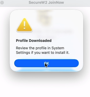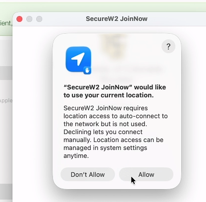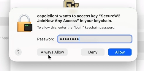 If asked to allow access to the "SecureW2 JoinNow Any Access" key in your keychain: