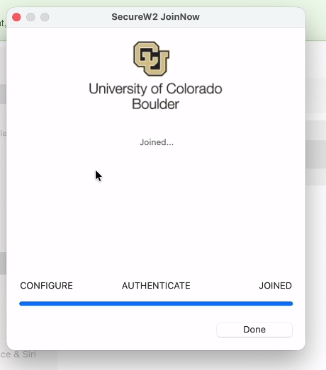 Once the client has finished authenticating, it should display a "Joined..." message. Click Done.