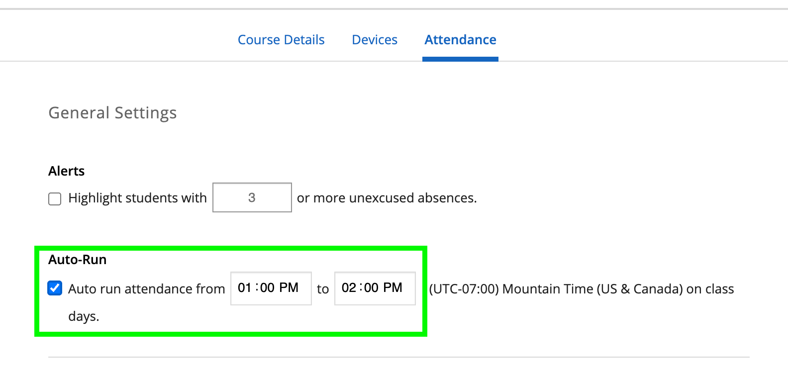 Click Save and iClicker will auto-run attendance during the time you specified.