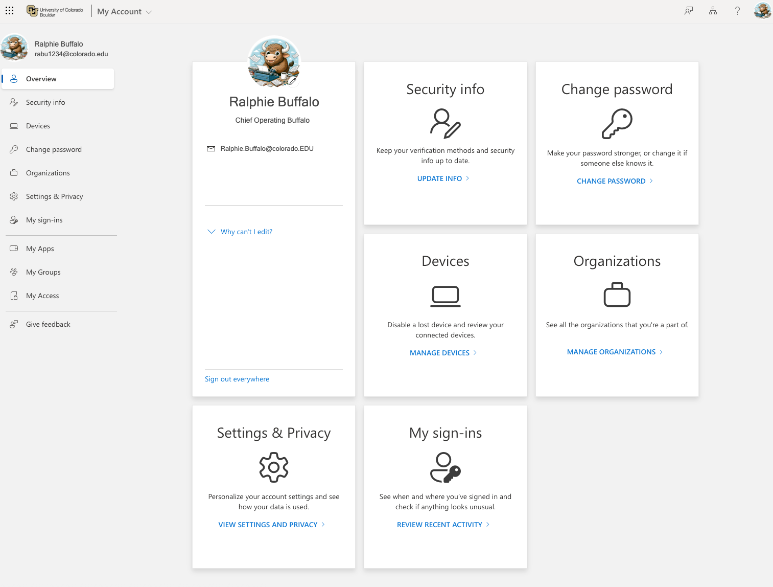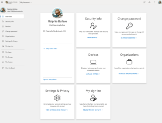 Log in to the Microsoft 365 My Account page. In the Security Info section, select Update Info.