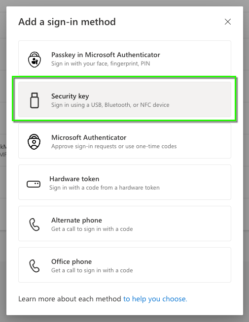 Type your unique security key PIN into the Windows security box, and then select OK. You'll return to the Setting up your new sign-in method box.